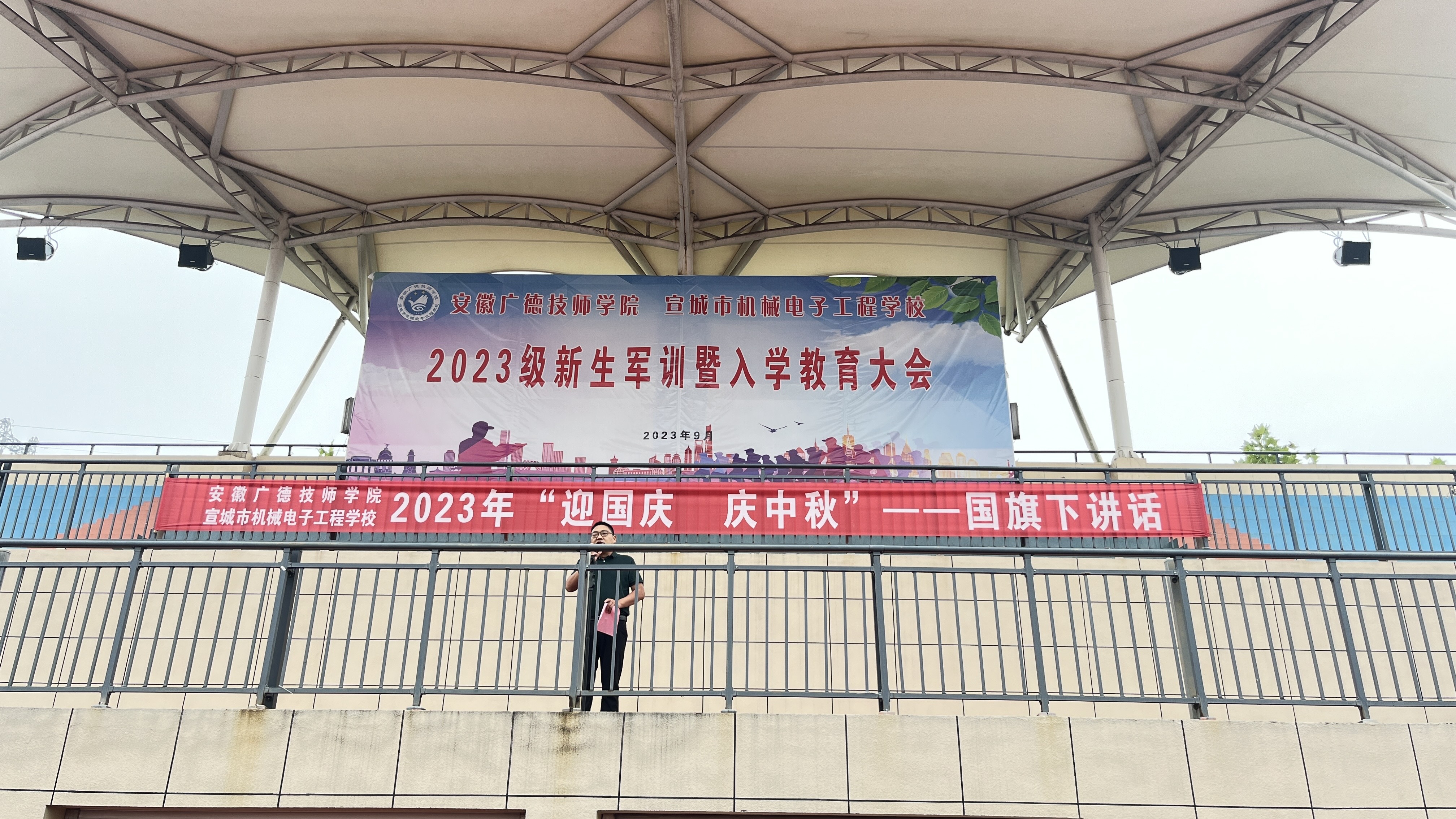 人间最美是金秋,五谷飘香丰收乐。9月26日上午八点半,宣城市机电学校全体师生齐聚操场,举行“迎中秋、庆国庆”主题升旗仪式。升旗仪式由校学生处副主任李君璐主持。