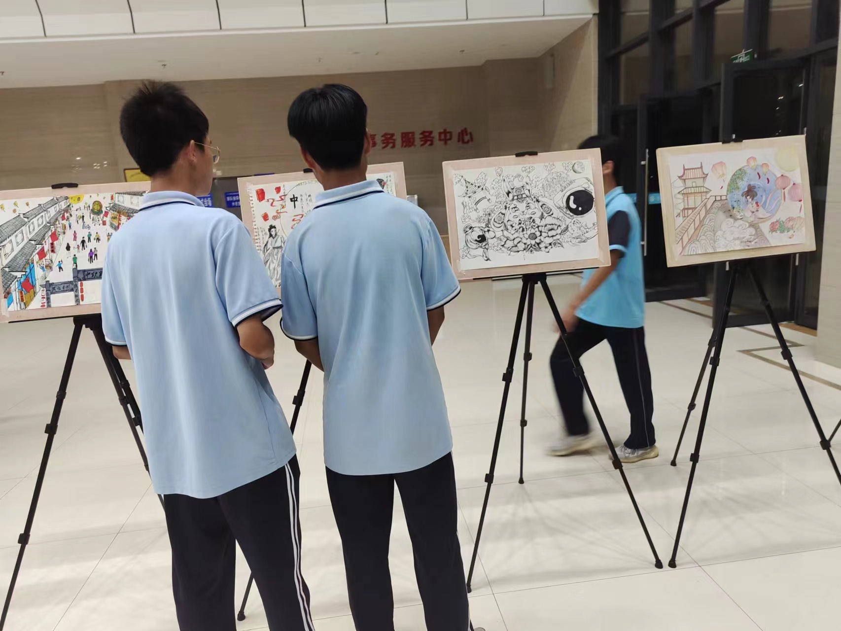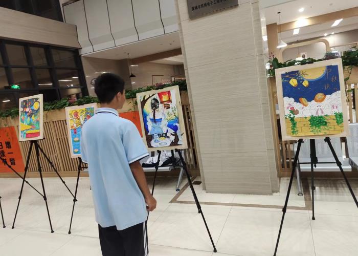 为了弘扬爱国主义精神,厚植爱党爱国情怀,丰富国庆节的节日气氛,切实加强中华优秀传统文化教育,宣城市机电学校于9月26日举行“迎中秋、庆国庆”绘画比赛活动。由学校专业老师评审之后,于9月27日晚,在图书馆信息中心一楼进行展览,吸引了很多师生前来欣赏。